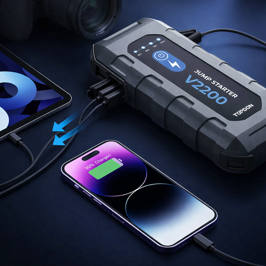 Arrancador portátil de hasta 2200A de potencia para para baterías 12V.